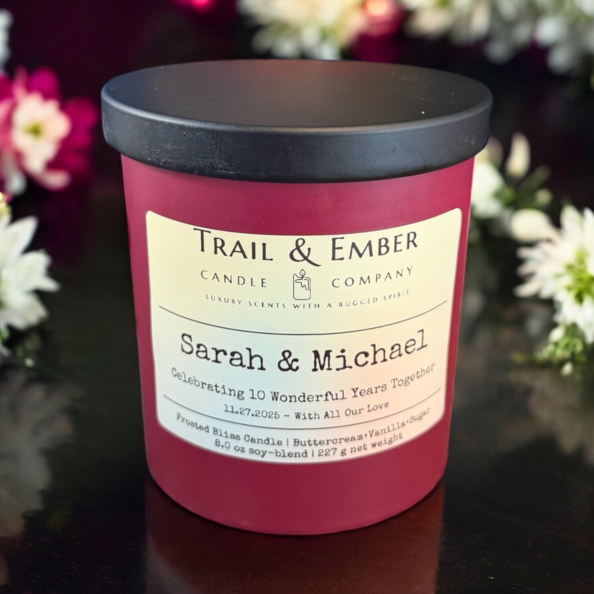 A gift as unique as they are. Introducing our all-new Frosted Bliss candle—an exclusive Trail & Ember creation available only in this personalized edition. Hand-poured and crafted for sweetness and warmth, this candle is perfect for birthdays, holidays, weddings, or just because.