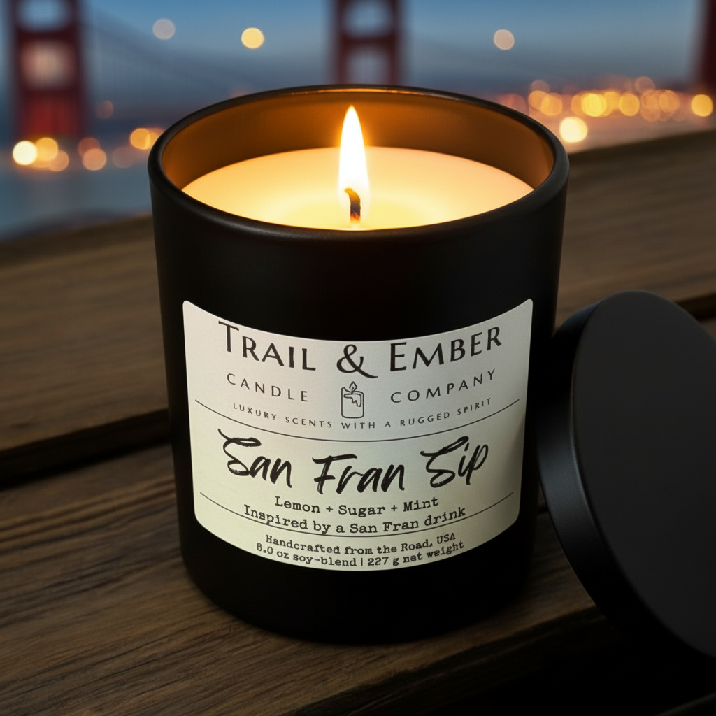Hand-poured in small batches with 100% Soy Wax, phthalate-free fragrance oils, and a cotton wick, San Fran Sip delivers a smooth, spirited burn that brings the sparkle of San Francisco into your space.